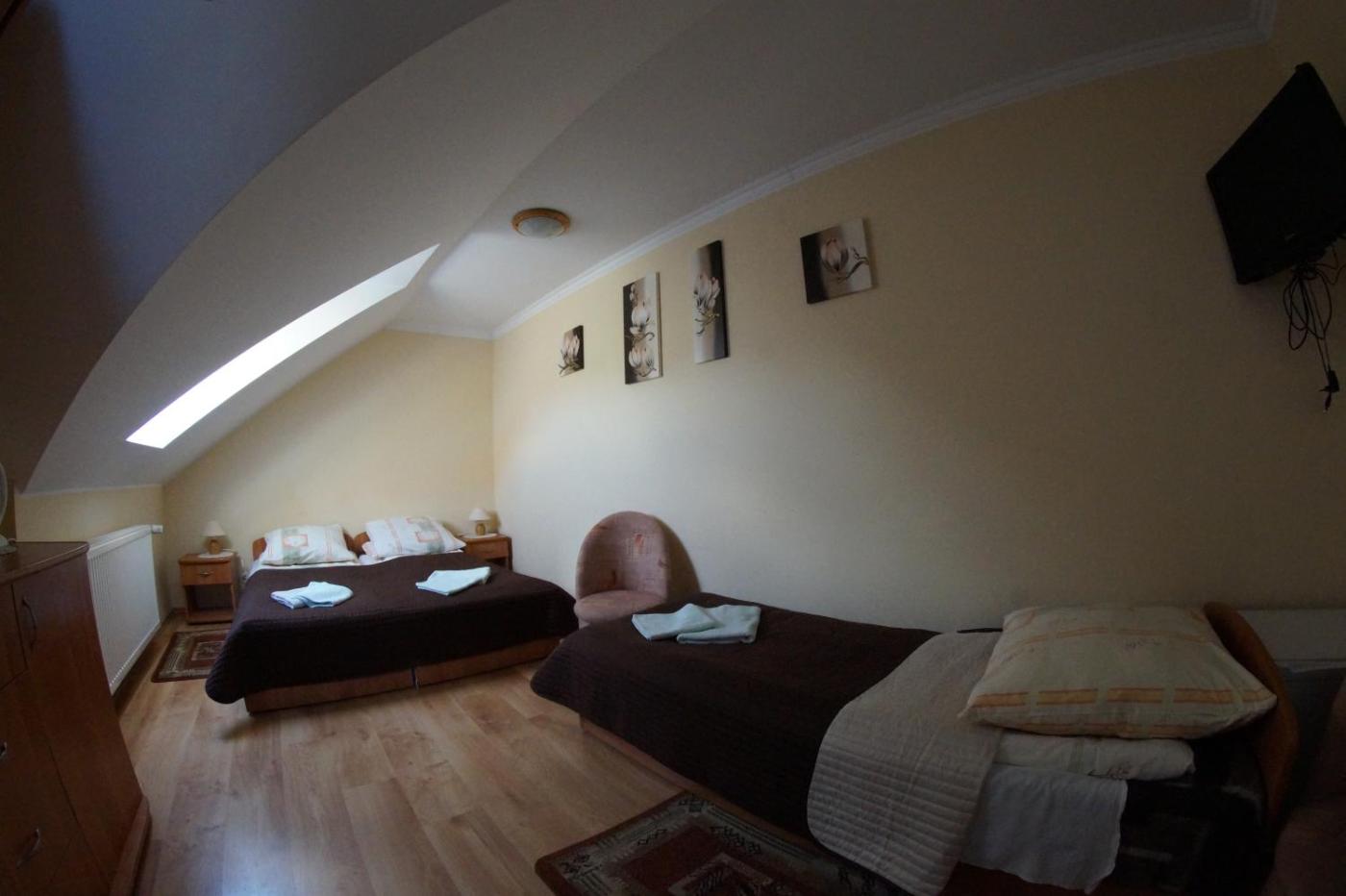 Pokój Dwuosobowy z prywatną łazienką poza pokojem. The double room features a tea and coffee maker, a wardrobe, as well as a private bathroom boasting a bath and a hairdryer. This double room has a dressing room, flat-screen TV, city views, as well as chocolate for guests. The unit has 2 beds. Pokój Dwuosobowy - 2 osobowy. Powierzchnia pokoju ok.: 10 mkw. ;